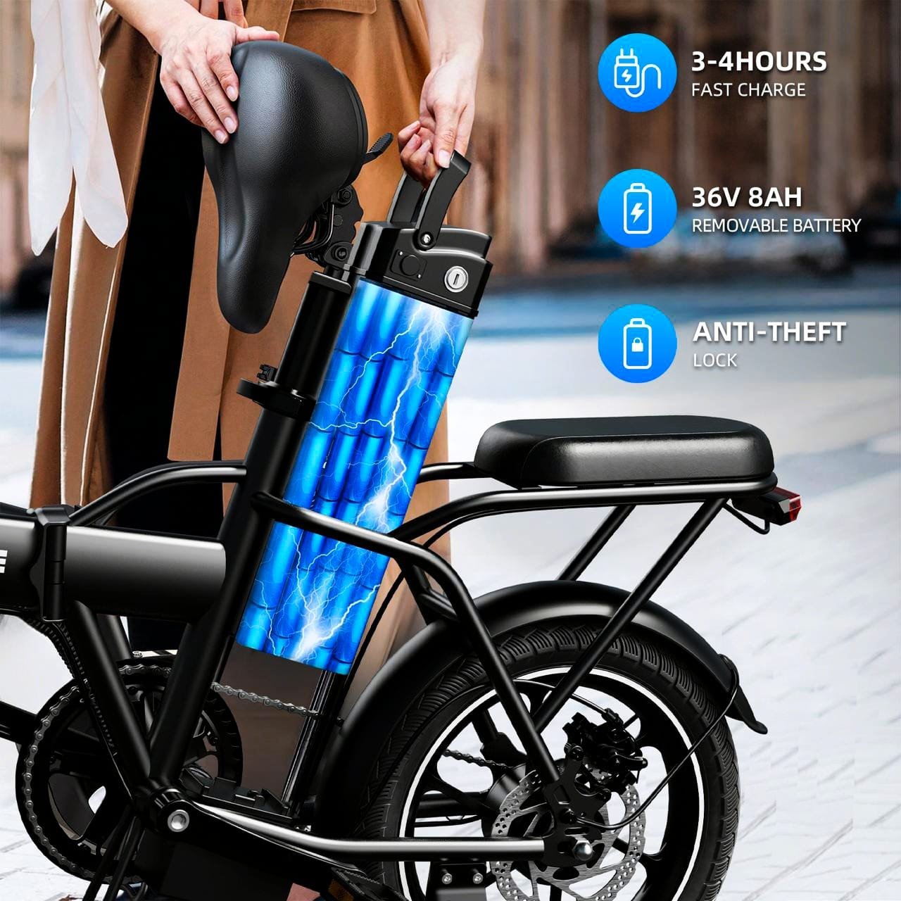 BATTERY: 36V 8AH for extended adventures
